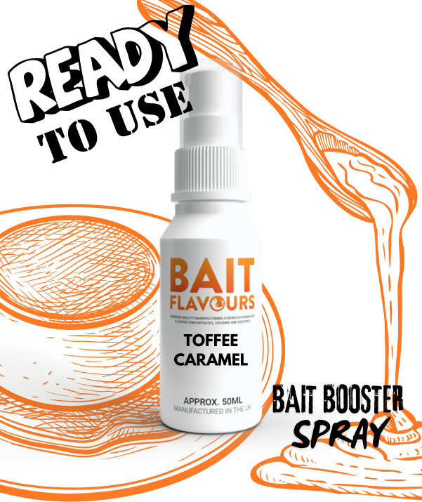 Don't fancy mixing it yourself? We've done the work for you! Our Bait Flavours Toffee Caramel Bait Booster Spray features a rich and creamy aroma of toffee and caramel that fish find hard to resist. Available in max strength, this 50ml spray is ideal for a wide range of fishing environments. Shake well before use and enhance your bait effortlessly!