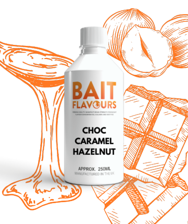 Indulge in a luxurious blend of rich chocolate, creamy caramel, and roasted hazelnut with Bait Flavours' Choc Caramel Hazelnut fishing bait flavour concentrate. This decadent combination delivers a deep, nutty sweetness with warm, inviting undertones. Crafted with manufacturing-strength potency, each 10ml bottle can potentially flavour up to 5kg of solid bait with just 0.2% or 2g per kilo (depending on boil/steam times), ensuring an irresistible attraction. Perfect for carp, tench, and a variety of other species, this flavour brings a touch of gourmet indulgence to your baiting strategy.