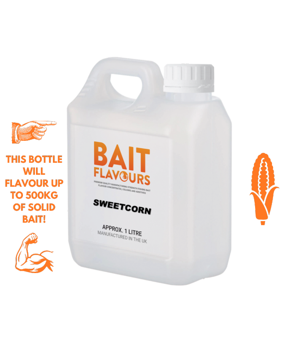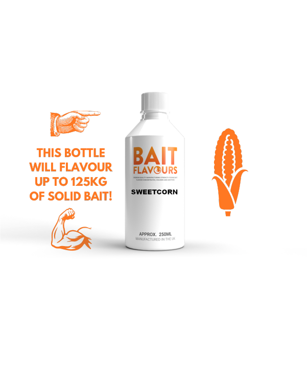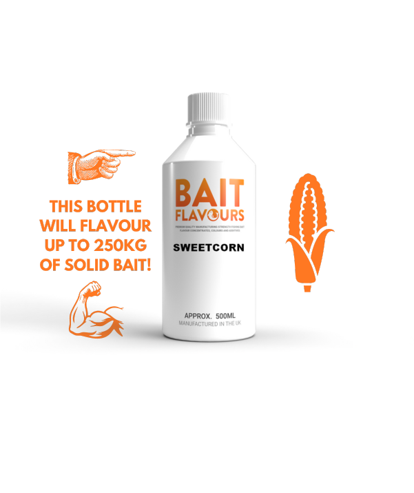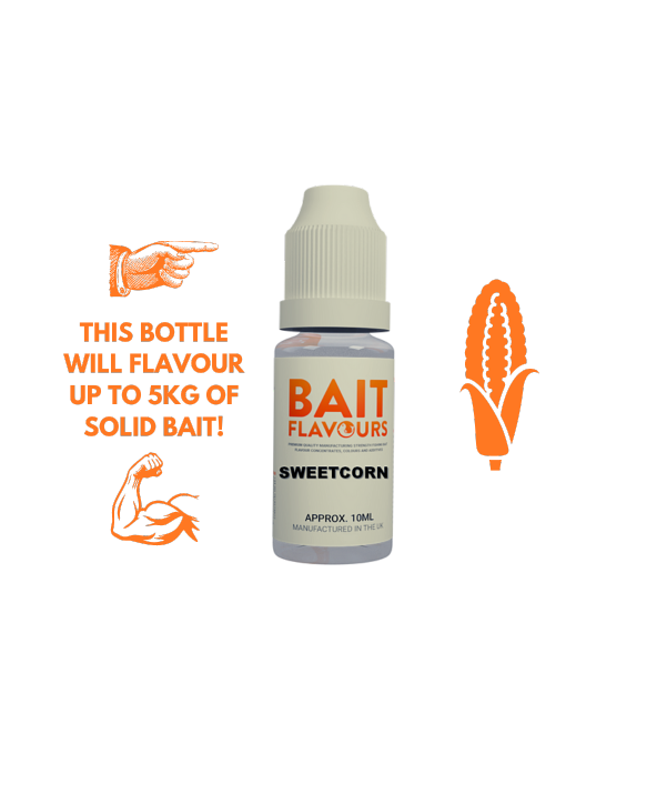 Sweetcorn: Add a touch of cereal infused sweetness to your bait arsenal with Bait Flavours' Sweetcorn fishing bait flavour concentrate. Capturing the essence of sweet, juicy corn, this irresistible flavour profile is a firm favourite among anglers worldwide. With a manufacturing strength potency, each 10ml bottle can potentially flavour up to 5kg of solid bait with just 0.2% or 2g per kilo (depending on boil/ steaming times), ensuring maximum effectiveness on the water. While specifically appealing to species such as carp, tench, roach, and barbel, Sweetcorn also attracts a wide range of other fish, making it a versatile and reliable choice with a proven track record for getting fish on the bank.