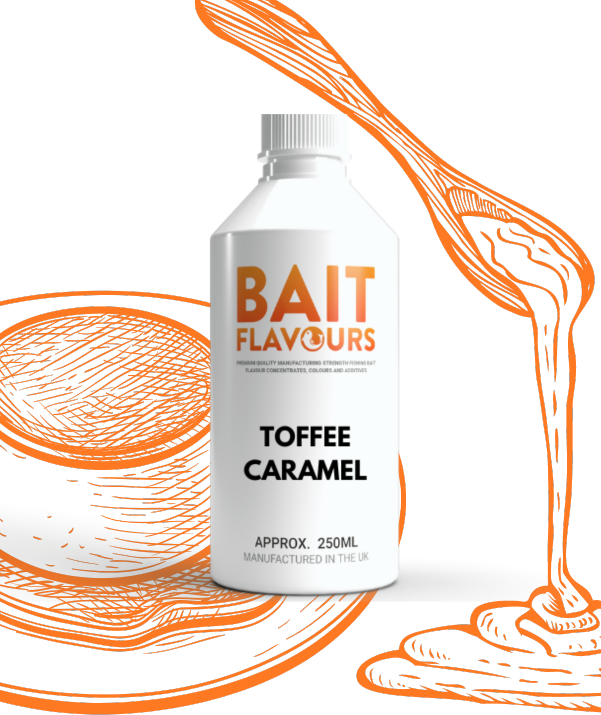 Toffee Caramel: Indulge in the rich and creamy aroma of Bait Flavours' Toffee Caramel fishing bait flavour concentrate. This exclusive, silky and luxurious blend offers the sweet and enticing deep scent of toffee and caramel, perfectly balanced for attracting a variety of fish species. With its manufacturing strength potency, each 10ml bottle can potentially flavour up to 5kg of solid bait with an inclusion rate of just 0.2% or 2g per kilo (depending on boil/ steaming times).